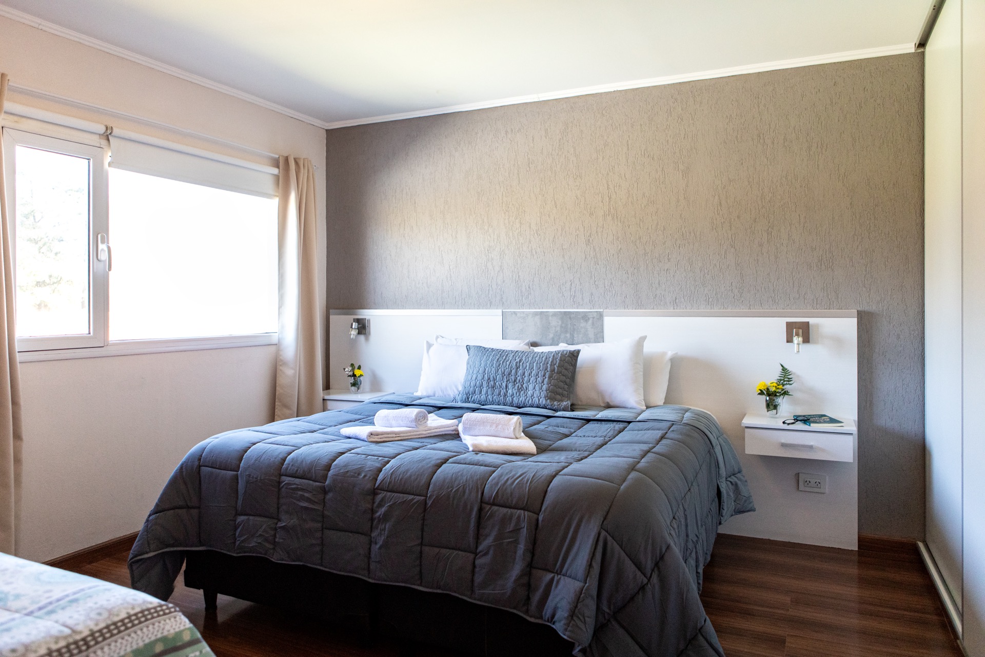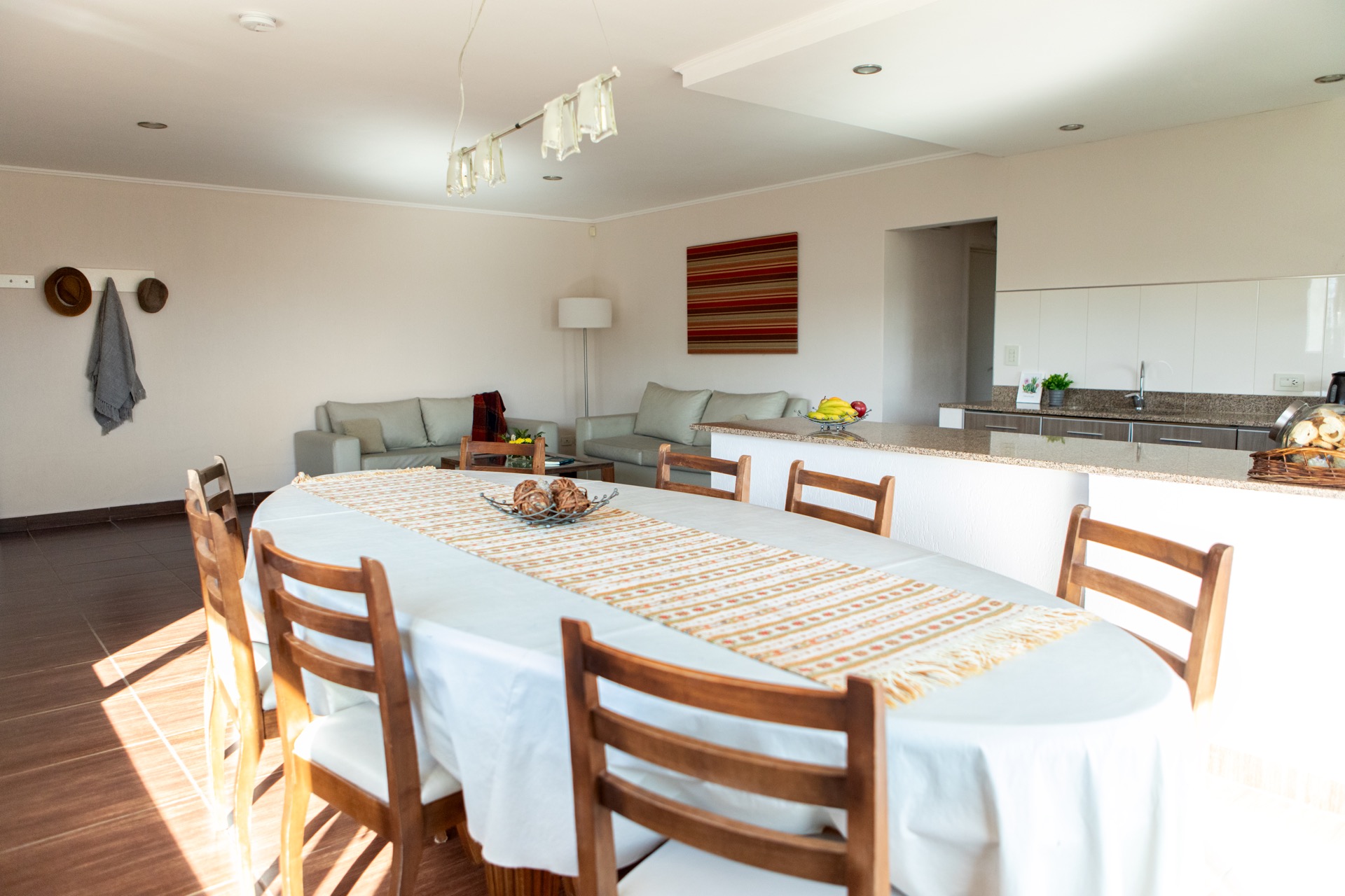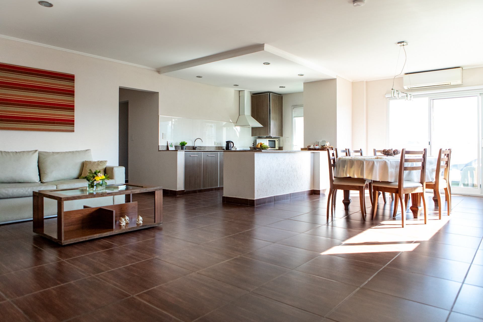 El apart N° 2 se encuentra en planta alta. Unidad de tres ambientes con una superficie de 100 m2 y capacidad máxima para 8/9 personas. Cuenta con cocina living comedor integrado, junto a un sofá cama de 2 plazas. Dispone de antebaño y baño completo con ducha.
