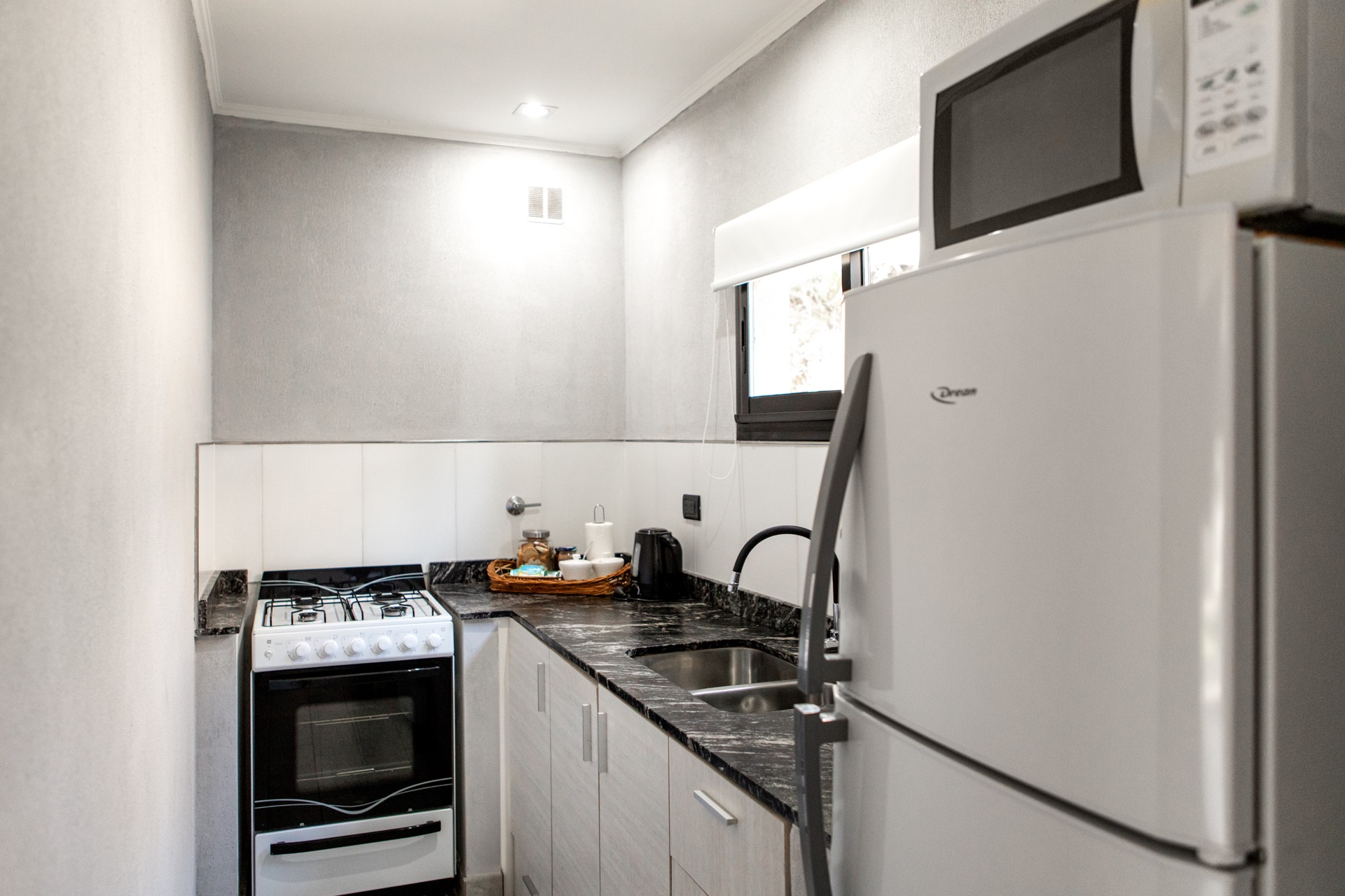 Unidad con vajilla completa. Cocina con horno a gas. Heladera con freezer. Pava y cafetera eléctrica. Microondas. TV LCD en todos los ambientes.